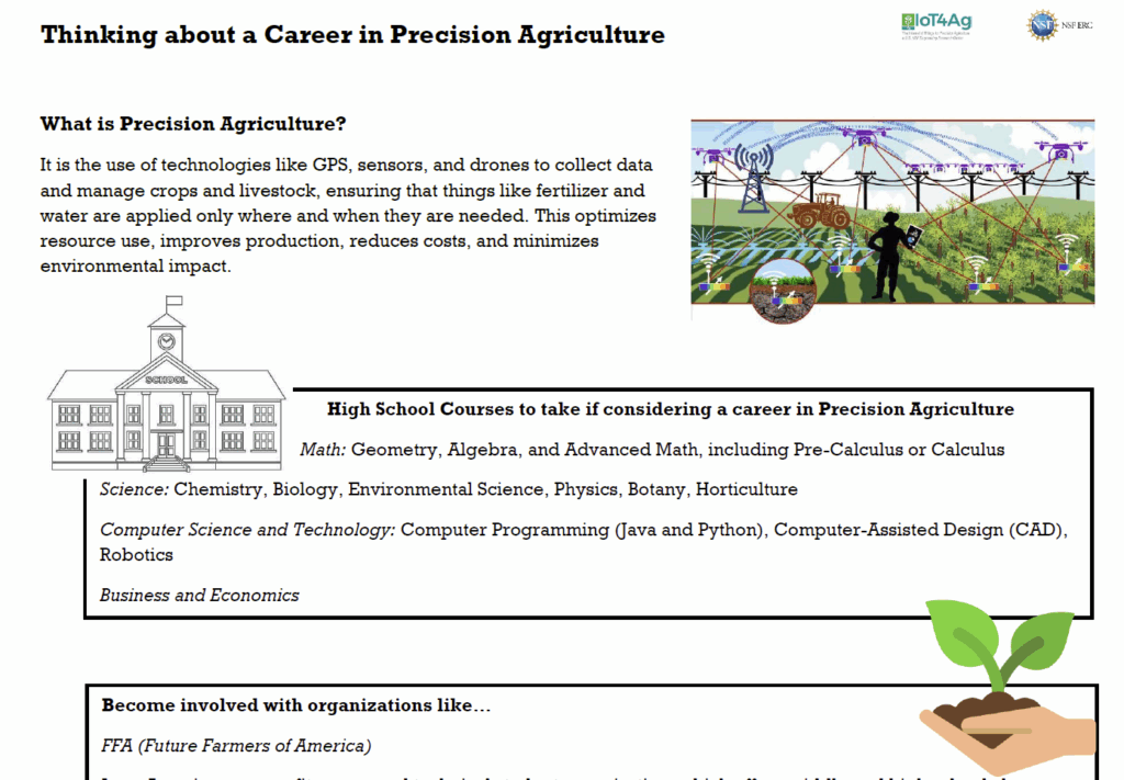IoT4Ag offers ready-to-use, student-centered activities that explore the intersection of Internet of Things technologies and agriculture. Lesson plans provide teachers with versatile entry points into AgTech, are aligned to educational standards (STEELS, NGSS, and Common Core), and use the 5E model (Biological Sciences Curriculum Study).